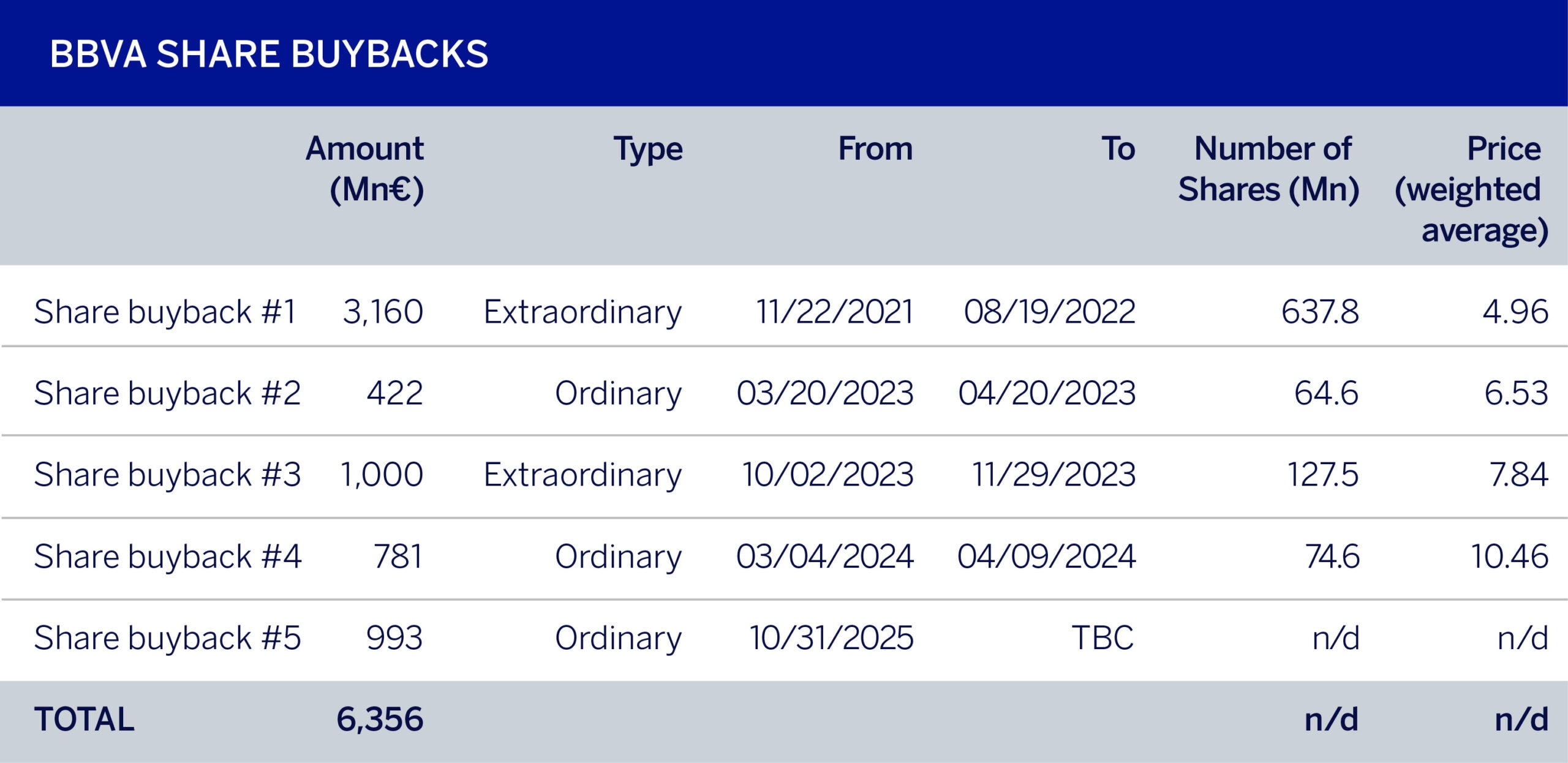 BBVA’s share buyback track record