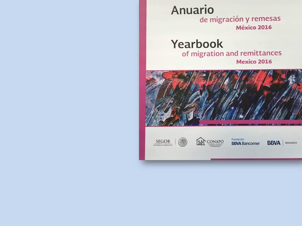 Los datos forman parte del Anuario de Migración y Remesas, México 2016, resultado de la colaboración entre el Consejo Nacional de Población (CONAPO), Fundación BBVA Bancomer y el área de Estudios Económicos de BBVA Bancomer. Este libro ofrece un panorama general sobre la emigración, inmigración, migración de tránsito y de retorno, así como de los flujos de remesas en México y en el mundo, a partir de los datos contenidos en fuentes estadísticas nacionales e internacionales