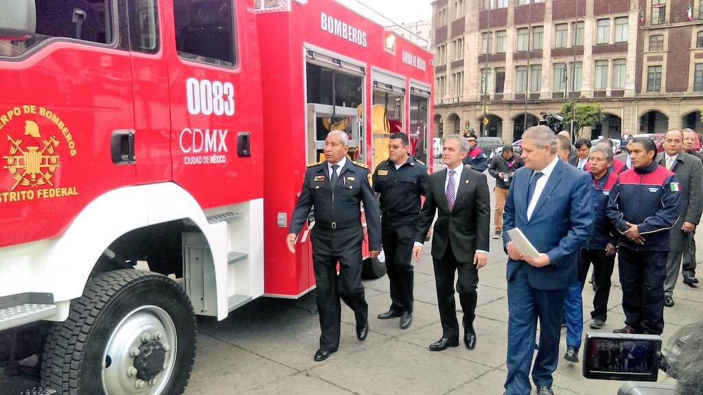 En la ceremonia de entrega de los equipos, Luis Robles Miaja, presidente del consejo del grupo financiero BBVA Bancomer, acompañado del Jefe de Gobierno de la Ciudad de México, Miguel Ángel Mancera, hizo un reconocimiento a los bomberos, “porque los días los dedican a ayudar o proteger la vida y el patrimonio de los habitantes de esta ciudad, poniendo muchas veces en riesgo sus vidas y sin otra motivación que el servir desinteresadamente a los demás”.Al describir las unidades donadas, Robles comentó que una de ellas es un vehículo contra incendio, con escalera y plataforma de 64 metros de largo, la única en su tipo en el país, con canastilla de rescate para 500 kilos de peso y equipos de iluminación y almacenamiento de líquidos con las más elevadas especificaciones actuales.