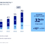 Els accionistes de BBVA rebran el proper 7 de novembre¹ un dividend a compte dels resultats de 2025, de 32 cèntims d’euro bruts per acció, en efectiu, un 10% més que el 2024. Es tracta del dividend a compte més alt de la història de BBVA. Els accionistes de Banc Sabadell que hagin participat al bescanvi també rebran aquest dividend, atès que el pagament es materialitzarà després de la liquidació de l’oferta pública d’adquisició.