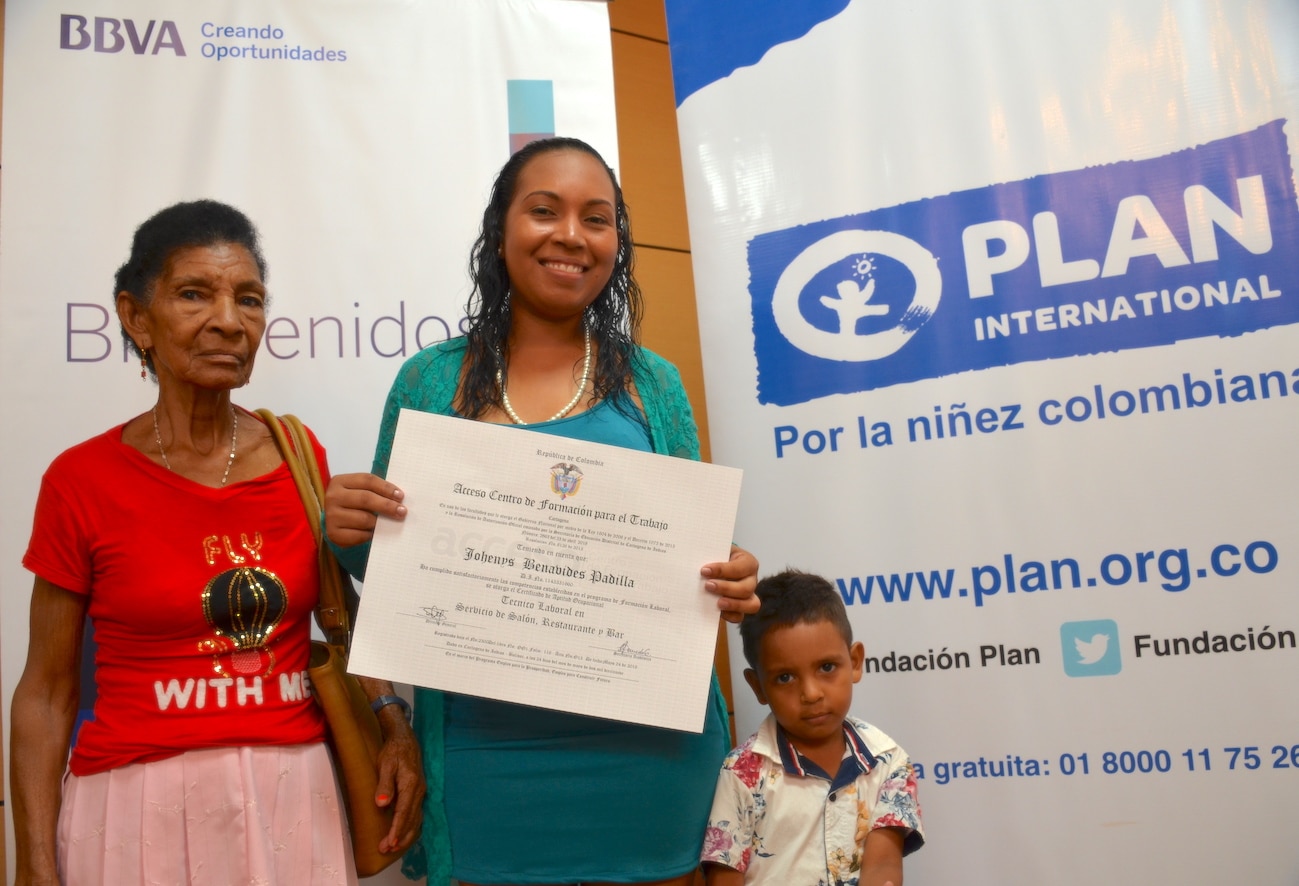 Yodeinis Benavides es una joven habitante del barrio El Pozón en Cartagena de Indias. Ella hace parte de este grupo de jóvenes y se mostró feliz por la oportunidad que les ha permitido cambiar sus vidas. "Tengo 27 años y soy madre de dos hermosos hijos por los cuales me he comprometido a aprovechar esta oportunidad, que me han dado BBVA y la Fundación Plan. Es el primer paso para convertirme en una profesional, hacer realidad mis sueños y poder dar un mejor futuro a mis hijos”, dice Yodeinis, quien comenzó como camarera en un prestigioso hotel de Cartagena y, gracias a la formación recibida, pasó a ser la coordinadora del bar y la piscina.