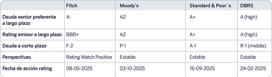 La mejora también reconoce la calidad crediticia del banco y la solvencia. El banco “equilibra una fuerte generación interna de capital con una política de dividendos generosa, junto con un perfil robusto de financiación y liquidez, respaldado por una amplia y estable base de depósitos, un modelo de financiación independiente para las filiales y un acceso amplio al mercado”, apunta.
