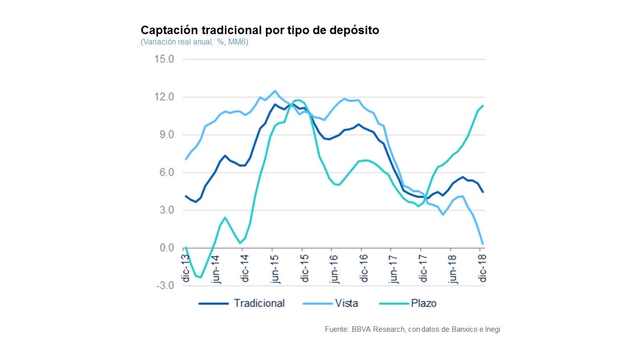 El comportamiento moderado de esos factores en 2018 limitó el ritmo de crecimiento del crédito a las familias (particularmente al consumo) y de la captación bancaria tradicional.