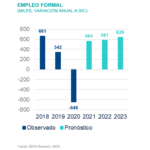 A pesar de la lenta recuperación del empleo a inicio del año, mejora la perspectiva de creación de empleo para 2021 de BBVA México, que anticipa una creación de 564 mil empleos a fin del periodo, explicada por la previsión de mayor dinamismo de la actividad económica, y a que se espera una reactivación del sector servicios, que es en donde prevalece la mayor pérdida de empleos. Sin embargo, esta creación de empleo será insuficiente para alcanzar los niveles previos a la pandemia este año y mucho menos para cubrir las necesidades de empleos formales en el país.