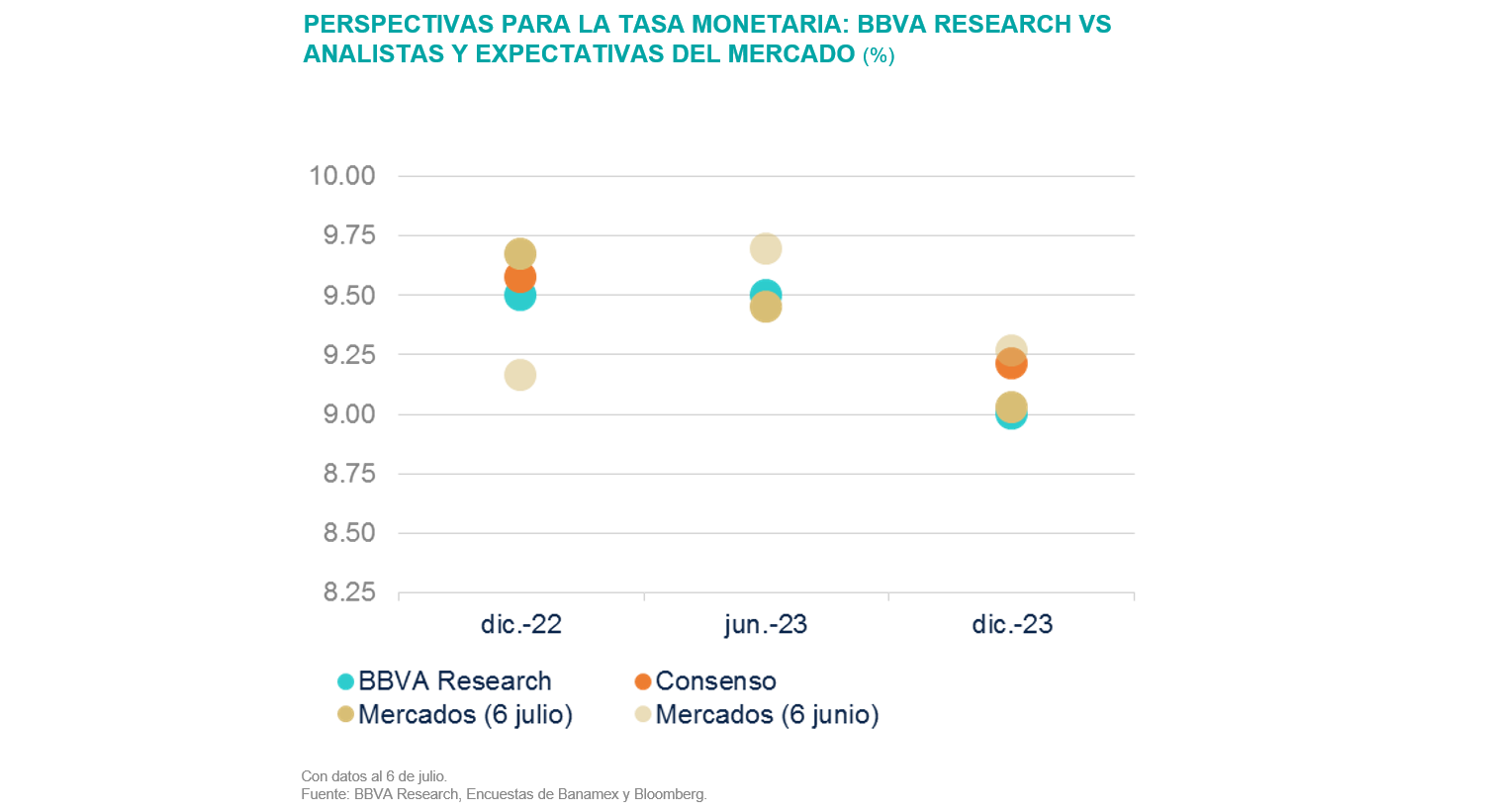 Banxico aceleró su ritmo de subidas: ahora BBVA México anticipa una tasa terminal en el ciclo de 9.50%, que prevé se alcanzará a fin de este año