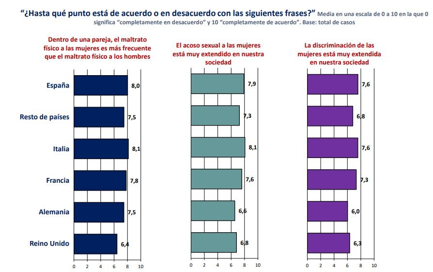 Asimismo, existe un acuerdo común sobre uno de los grandes desafíos de nuestro tiempo, la violencia contra las mujeres. El grueso de los europeos identifica a la mujer como la principal víctima del maltrato doméstico, y consideran esta situación como una lacra social que hay que abordar.