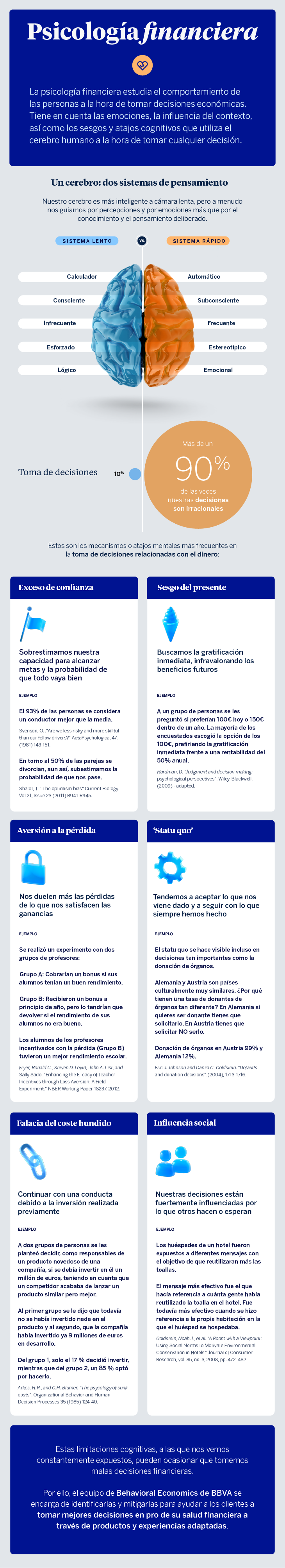 El sistema de pensamiento rápido —explica la responsable de economía conductual en BBVA— toma decisiones utilizando sesgos cognitivos y atajos mentales que a menudo pueden llevarnos a cometer errores.