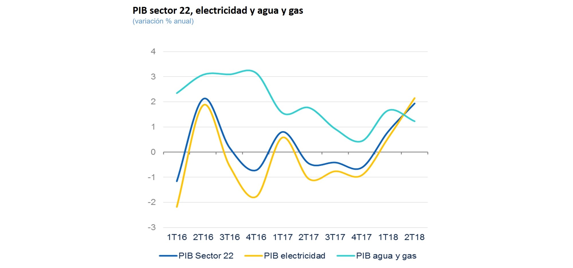 La electricidad se contrajo en 2017 y recupera su crecimiento en el primer semestre de 2018.