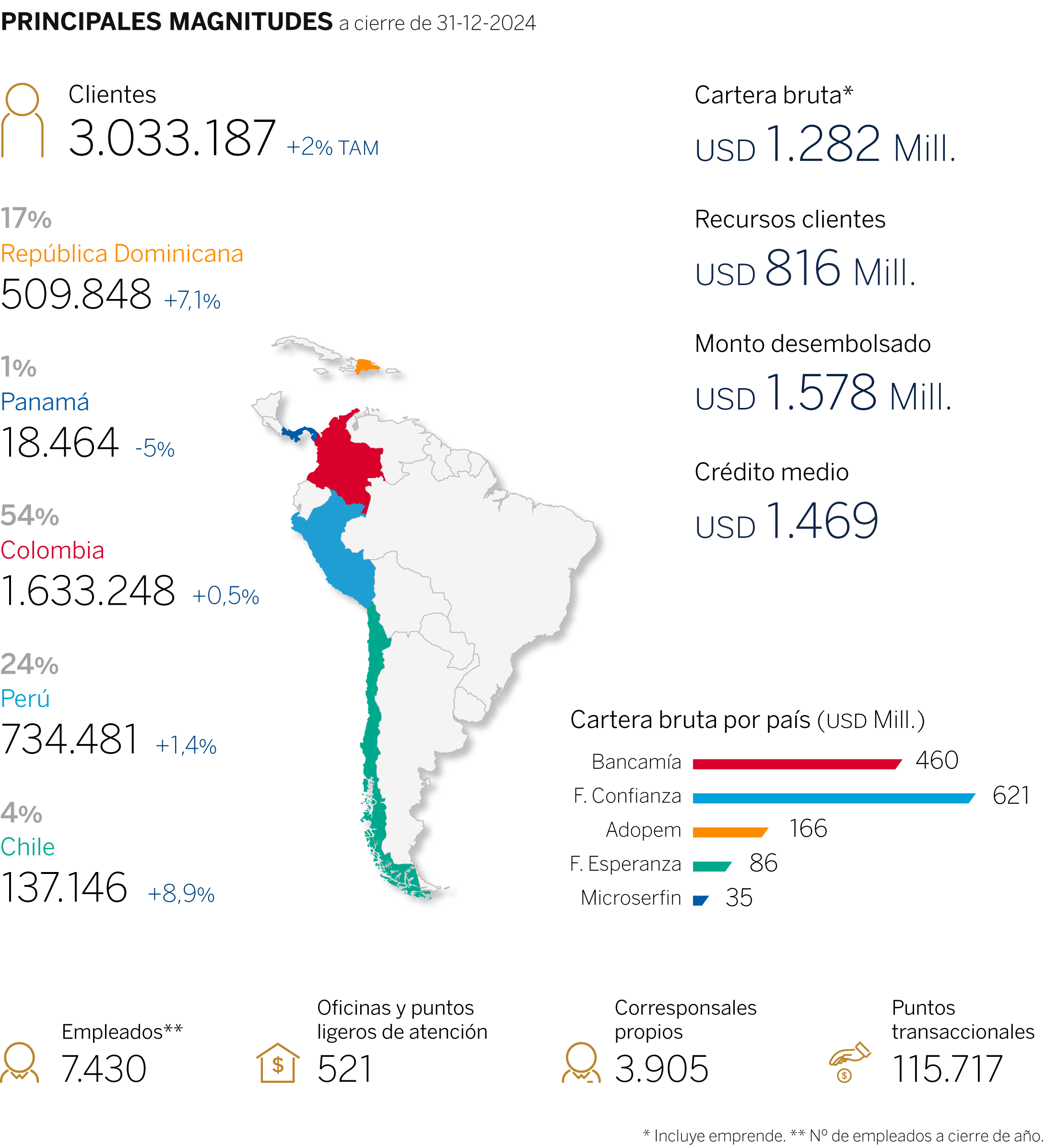 La Fundación Microfinanzas BBVA (FMBBVA) ha publicado su Informe de Impacto 2024, que muestra cómo su labor contribuye al progreso económico y social de millones de personas en situación de vulnerabilidad en América Latina. En 2024, las entidades de la FMBBVA atendieron a más de tres millones de emprendedores de escasos recursos, y concedieron créditos por valor de 1.578 millones de dólares.