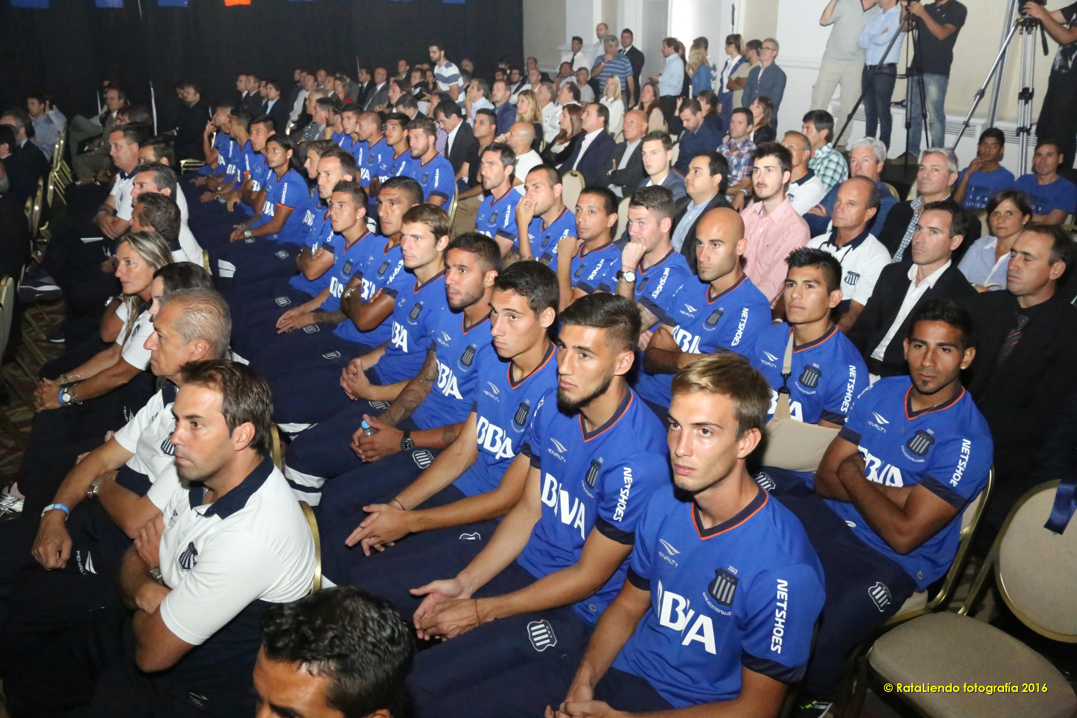 El equipo profesional de Talleres de Córdoba y su cuerpo técnico estuvieron presentes en la presentación de la tarjeta Talleres - BBVA Francés
