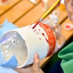 En el taller de arte se realizó el armado de alcancías con botellas de plástico recicladas por los propios voluntarios.